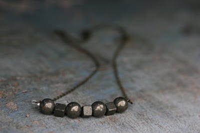 FINALLY! Ok so I'm a little more than excited that I finally went out and got a new Macro Lens! Yay! Obviously, the first thing I wanted to do with it was take a million pictures of my new Fall Collection. I can't tell you how glad I am that I can finally take photos that do justice to my materials, like the stunningly textured pyrite beads featured above! Luckily, I was able to get any photos in before it started to rain but as my photo session was cut short this is merely a sneak (and incomplete) preview.